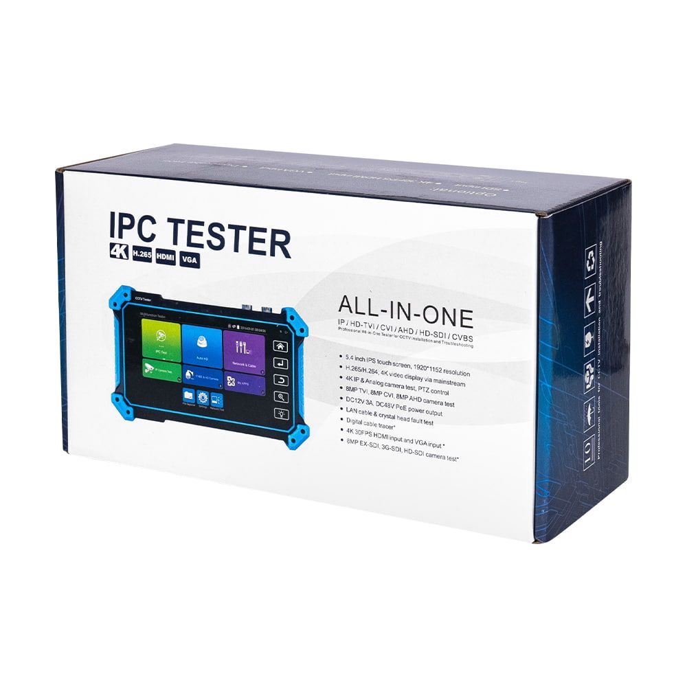 Комплект з тестера для камер відеонагляду та кабельного трасувальника/тестера кабелю; тестер для камер: 5.4-дюймовий сенсорний екран, роздільна здатність 1920*1152; підтримка AHD, CVI, TVI до 4K (3840*2160); апаратне декодування – підтримує перегляд відео з мережевої камери H.264/H.265 до 4K (3840*2160); вхід HDMI 4K та VGA 1920*1200; вбудований WiFi; адаптивний мережевий порт RJ45 10/100/1000M; вхід аудіосигналу 3.5 мм; підтримка карт пам'яті microSD до 32 ГБ; підтримка PoE 48 В, вихід живлення DC12V/3A; вбудована літій-іонна батарея 3350 мА·год з часом автономної роботи до 6 годин, живлення від адаптера DC12V/1A; габаритні розміри 183 / 150 / 40 мм, вага 320 г; тестер для кабелю: визначає тип кабелю: 100M/1000M, прямий/перехресний/інший; сканує кабель UTP/STP/RJ45/RJ11 і перевіряє цілісність; порт UTP підтримує максимальну напругу 60 В; визначає статус у робочій телефонній лінії: режим очікування, дзвінок та зняття трубки; виявлення живлення PD; виявляє коротке замикання кабелю; живлення: дві батарейки типу АА, слід придбати окремо; габаритні розміри 218 / 48 / 32 мм, вага 100 г; у комплекті: акумулятор (попередньо встановлений), адаптер живлення DC12V/1A, кабель живлення постійного струму, BNC-кабель, кабель RS485, конвертер RJ45-BNC, аудіокабель, ремінець для носіння, сумка для зберігання