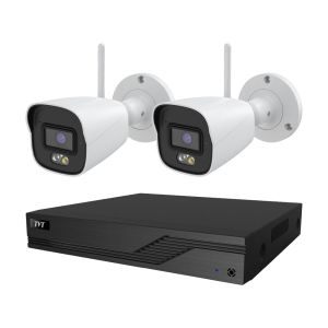 Комплект відеонагляду: IP-відеореєстратор на 4 канали, 2 зовнішні циліндричні IP-відеокамери 5MP з WiFi 6. Відеореєстратор: 4-канальний мережевий з 4 портами PoE, з максимальною роздільною здатністю 8MP; відеокодек H.265+, H.265S, H.265, H.264; вхідний/вихідний потоки 40Mbps/64Mbps; PoE-порти RJ45 100Mbps x4, загальна вихідна потужність 40 Вт; інтерфейси: мережа RJ45 100Mbps, USB 2.0 x2, HDD: SATA3.0 до 10 ТБ; живлення DC 48V/1.8А; розміри 255 / 222 / 42 мм. Відеокамера: 5Mp IP-відеокамера з WiFi 6, з функціями аналітики; матриця 1/2.7″ CMOS; роздільна здатність 5Mp (2880*1620); фіксований об’єктив f=2.8 мм; кути огляду 110° горизонтальний, 61° вертикальний; ІЧ + LED підсвічування до 30 м; відеокомпресія H.265+ / H.265 / H.264+ / H.264; чутливість 0.007 Люкс @F1.6, AGC увімкнено, 0 Люкс з ІЧ; мережа: Wi-Fi 2.4GHz/5GHz, дальність зв’язку без перешкод до 200 м, RJ45 100M; ONVIF; живлення DC12V, споживання 6.02 Вт; 1 аудіовхід, вбудований мікрофон; запис на microSD карту (до 256 ГБ); ступінь захисту IP67; габаритні розміри 182.4 / 86 / 126.8 мм; вага 0.52 кг