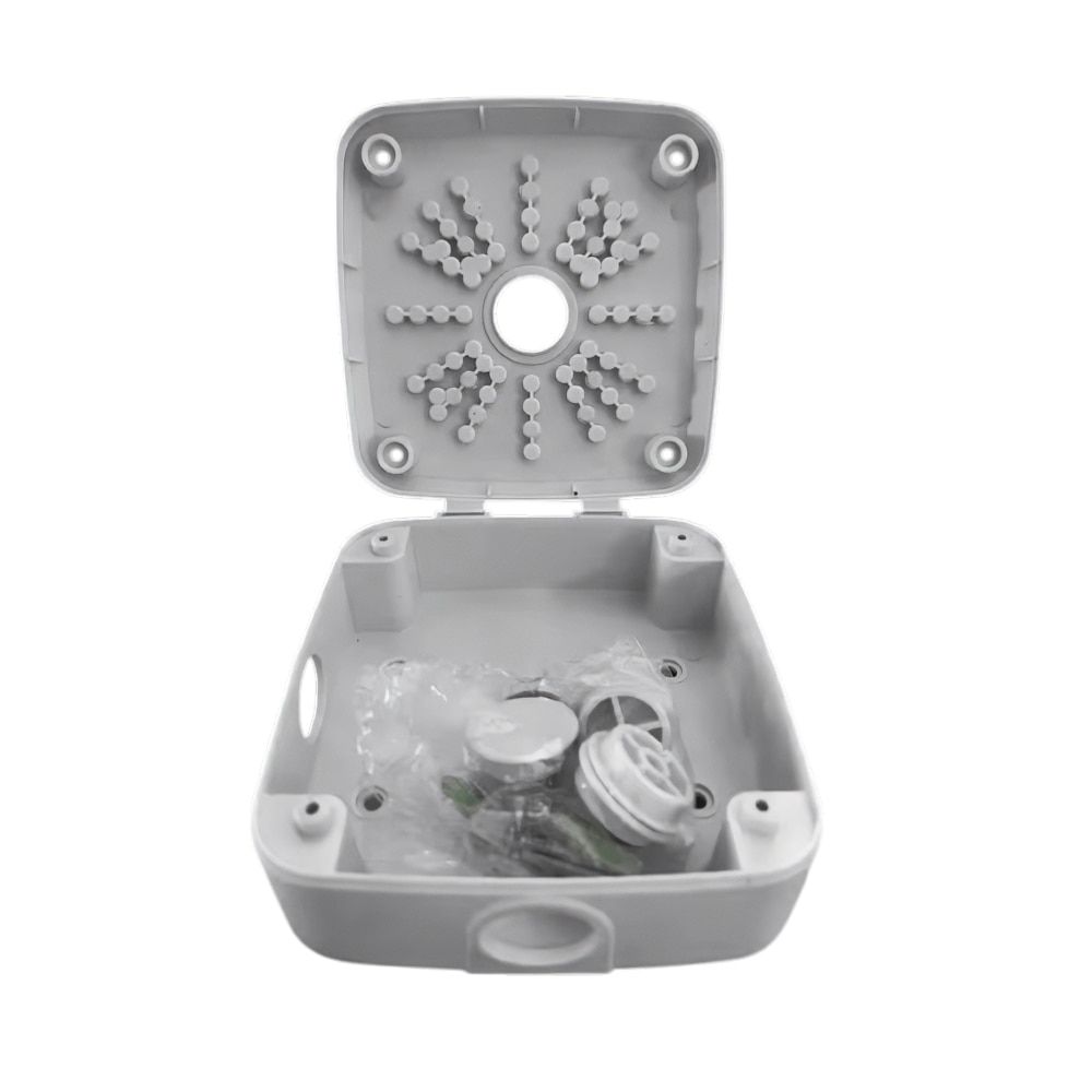 Монтажна коробка для встановлення камер відеонагляду; матеріал – пластик, стійкий до ультрафіолету та перепадів температур; накладний монтаж на стіну або стелю; гвинти для кріплення у комплекті; розміри 130 / 130 / 50 мм; вага 290 г