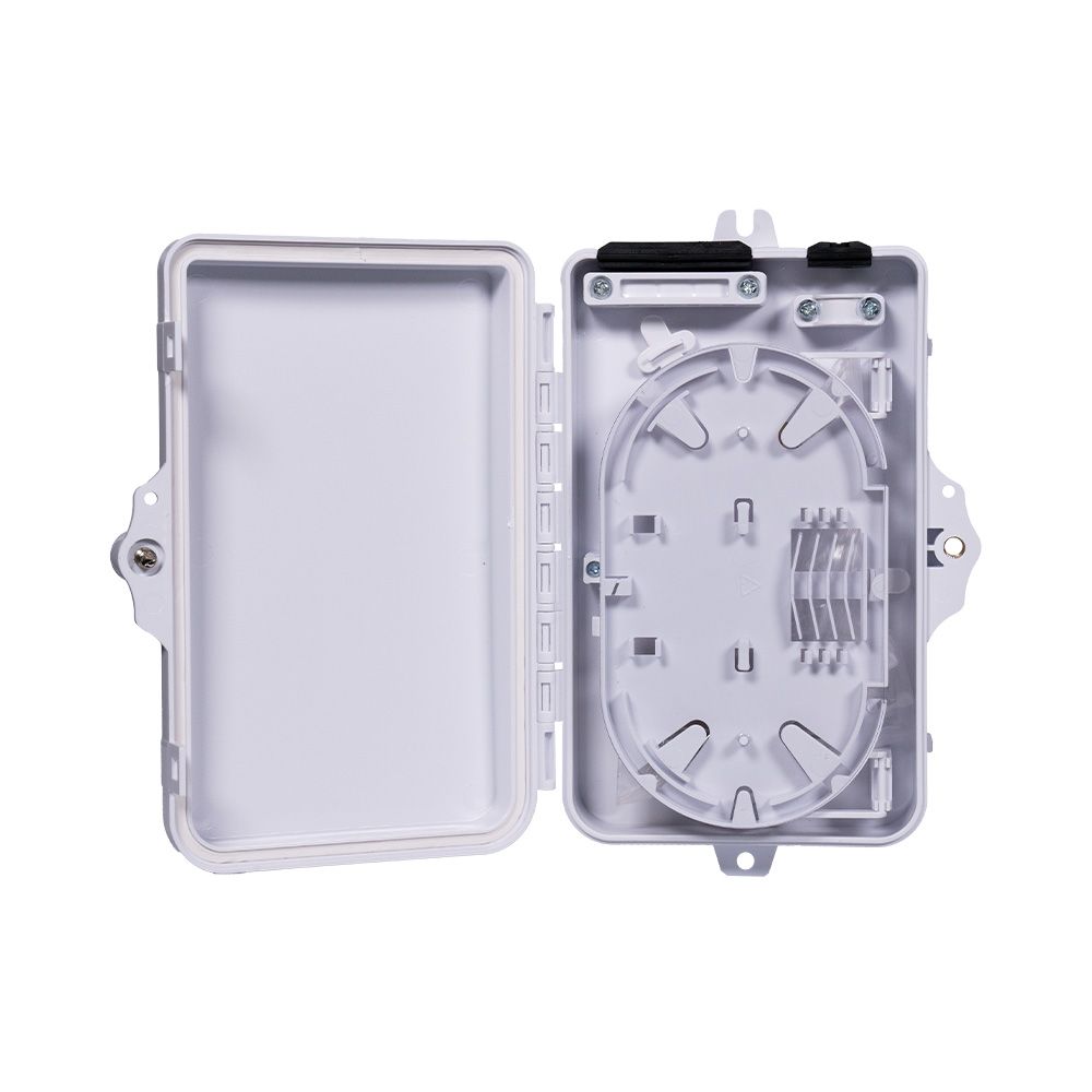 Оптичний мінібокс настінного та зовнішнього монтажу; розподілення до 8 волокон; 1 сплайс-касета; максимальна кількість адаптерів – 4 шт.; кабельні введення – 1 шт.; матеріал – пластик; розміри 210 / 140 / 40 мм