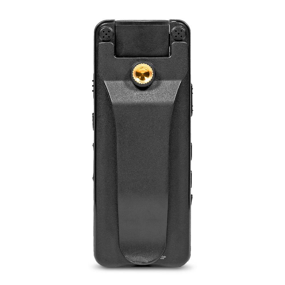 Компактний нагрудний відеореєстратор з поворотним об'єктивом, диктофоном і екраном. Якість запису відео: 1080p (1920x1080)/30fps; 720p (1280x720)/30fps; циклічний запис відео: 5/10 хв. Роздільна здатність фото: до 40 Мп. Кут огляду: 160°. Поворотний об’єктив 180°. ІЧ-підсвічування: до 5 м. РК-екран 1.3". Запис на карту пам'яті до 128 ГБ. Запис звуку: до 7 м, vaw 706kB. Роз'єми: micro-USB. Ємність батареї: 2200 mAh. Час роботи: до 10 годин. Ступінь захисту IP65. Габаритні розміри: 96 / 38 / 16 мм. Вага: 80 г. У комплекті магнітна кліпса, шнур micro-USB
