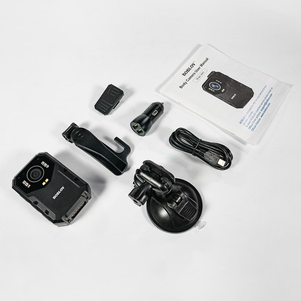 Автомобільний зарядний пристрій, Блок живлення, Кабель mini-USB, Кріплення – 3 шт., Нагрудний відеореєстратор