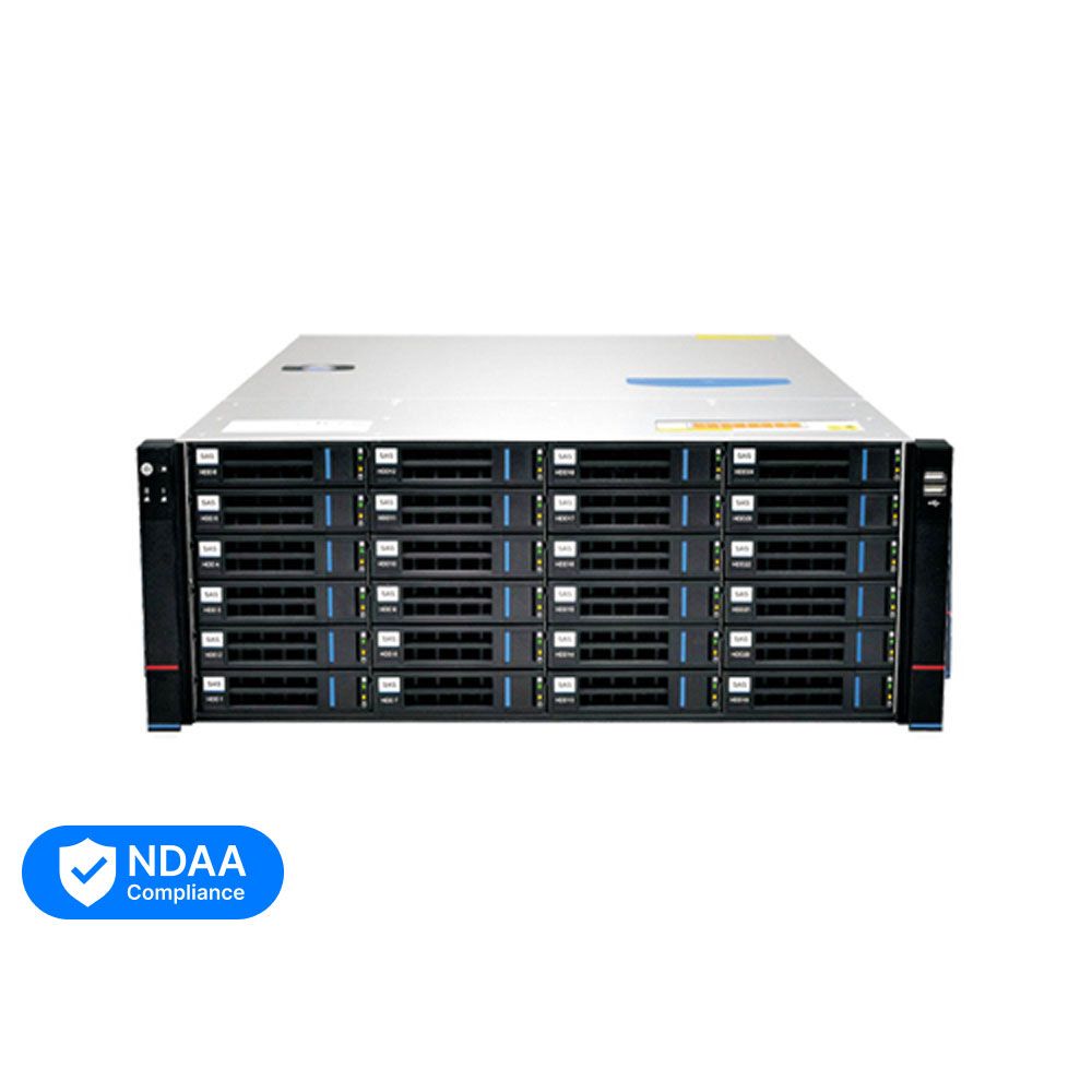 Процесор Intel Xeon E3, ОС: Cent OS7.4; 8 ГБ DDR4 ECC; два порти Gigabit Ethernet I210-AT; 2.5" SATA x 2; 3.5" SATA x 24 (з можливістю гарячої заміни); макс до 384TB; RAID 0, 1, 5, 6;пропускна здатність 700 Мбіт/с; PCI: 1*PCI-E3.0*8; 1*PCI-E3.0*8(x4); 1*PCI-E3.0*16(x8); VGA x1, USB x6, IPMI x1, RS232 x1; макс. кількість каналів доступу 2048; кількість користувачів 64; 800 Вт 1+1 резервне джерело живлення, 100-240 В; розміри 670 / 444 / 177 мм
