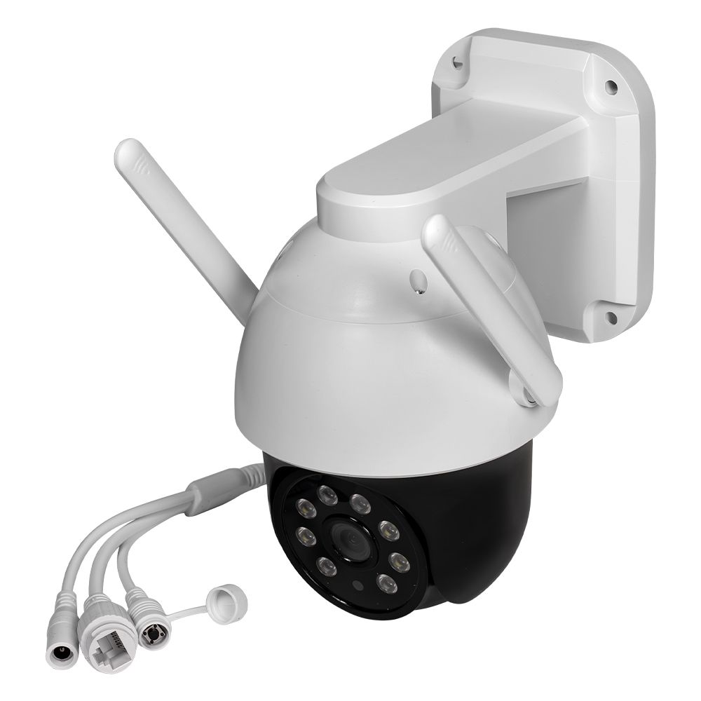 5Mp вулична поворотна IP-відеокамера з підтримкою Wi-Fi (2.4 ГГц) з подвійним підсвічуванням ІЧ+LED; роздільна здатність запису 2880*1620 пікселів; відеокодек H.265/H.264; об'єктив f=4 мм; ІЧ-підсвічування 20 м + LED-підсвічування 15 м; кут повороту 0-270°, кут нахилу 0-80°; вбудований мікрофон та розмовний динамік; двостороннє аудіо високої якості; віддалений моніторинг на смартфонах iOS та Android (застосунок CareCamPro); режим AP – точки доступу; порт Ethernet 1*RJ45, 10/100M 10-100 Base-T; ONVIF; P2P; запис за детекцією руху та інтелектуальний запис у разі виявлення у кадрі людини на карту micro SD (до 128 Гб); живлення 12В/0.8А, блок живлення у комплекті DC12В/2А; клас захисту IP66; пластиковий корпус; розміри 150 / 150 / 109 мм, вага 445 г