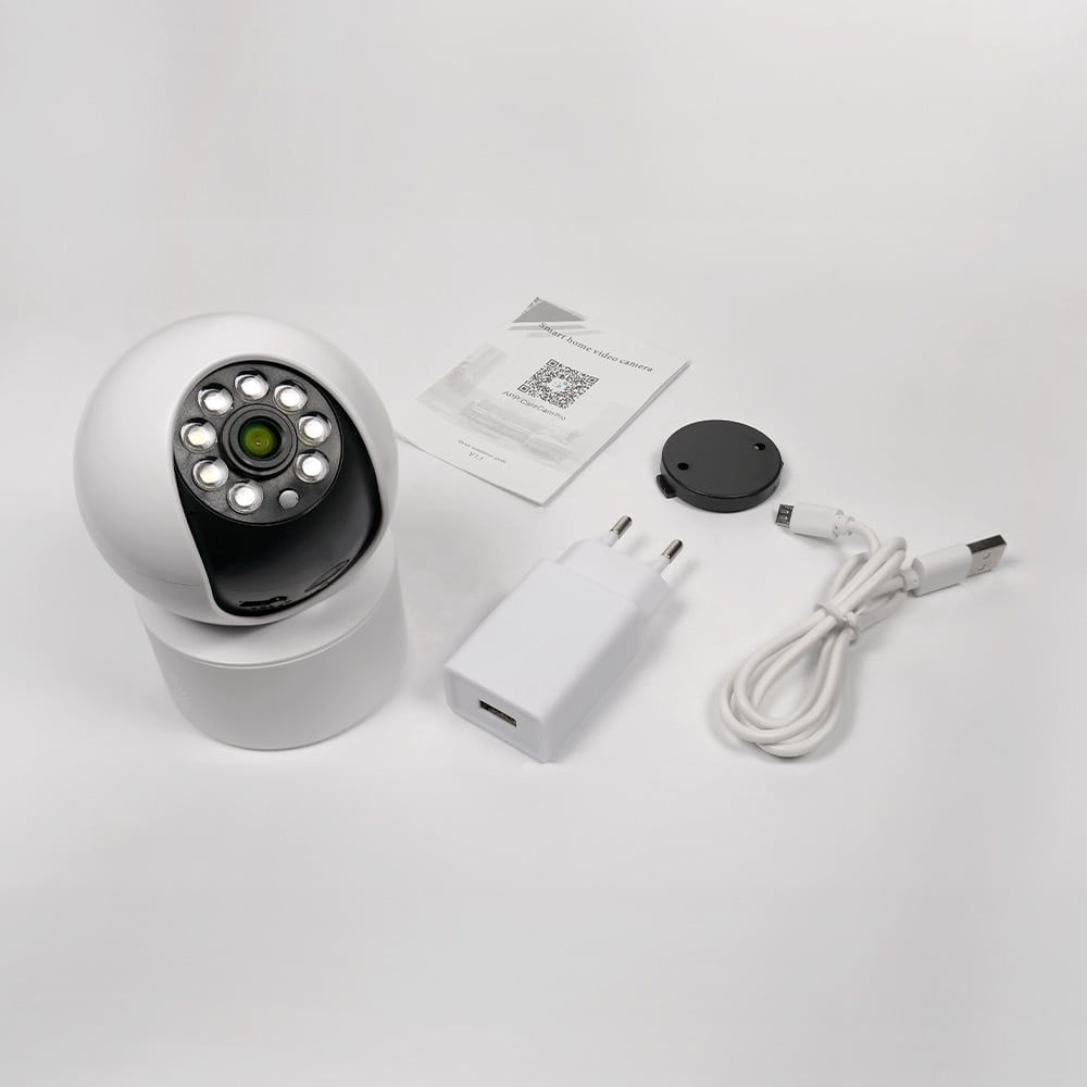 5Mp внутрішня поворотна IP-відеокамера з підтримкою Wi-Fi (2.4 ГГц) з подвійним підсвічуванням ІЧ+LED; роздільна здатність запису 2880*1620 пікселів; відеокодек H.265/H.264; об'єктив f=3.6 мм; ІЧ-підсвічування 12 м + LED-підсвічування 12 м; кут повороту 0-340°, кут нахилу 0-68.5°; вбудований мікрофон та розмовний динамік; двостороннє аудіо високої якості; функція автотрекінгу; віддалений моніторинг на смартфонах iOS та Android (застосунок CareCamPro); вбудований PIR-датчик із виявленням руху до 10 м; запис за детекцією руху на карту micro SD (до 128 Гб); живлення 5 В/1.2А, блок живлення у комплекті DC5В/1.5A; пластиковий корпус; клас захисту IP55; розміри 78 / 78 / 112 мм, вага 165 г