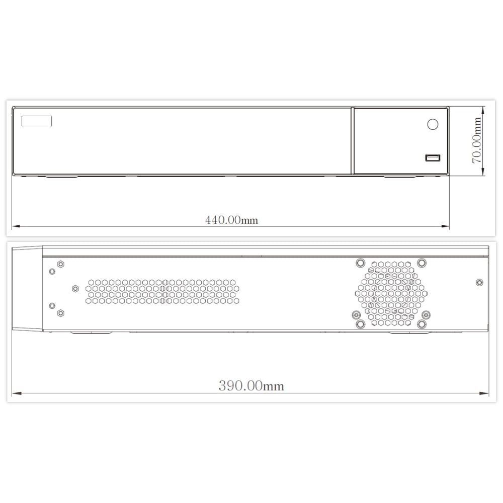 32-канальний мережевий відеореєстратор з 16 портами PoE, з підтримкою інтелектуальної відеоаналітики, з максимальною роздільною здатністю 12MP; відеокодек H.265S, H.265+, H.265, H.264; запис: 12MP@20fps, 9MP/ 8MP / 6MP / 5MP / 4MP / 3MP / 1080P / 960P / 720P @25fps; вхідний/вихідний потоки 320Mbps/256Mbps; відеовихід: 2x HDMI (HDMI1: 4K, HDMI2: Full HD), 1x VGA (Full HD); аудіо: вхід RCA x1 / вихід RCA x1; тривожні: вхід 16 / вихід 4; база даних облич: 32 бібліотеки / 10000 фото облич, обчислення облич: 18 фотографій/сек; перегляд архіву камер: локально/мережею 16/16; PoE-порти RJ45 100Mbps x16, загальна вихідна потужність 150 Вт; мережа: RJ45 1000Mbps x2; інтерфейси: USB 2.0 x2, USB 3.0 x1, RS485; HDD: SATA x4 до 10 ТБ, E-SATA x1; живлення ATX 300W; розміри 440 / 390 / 70 мм