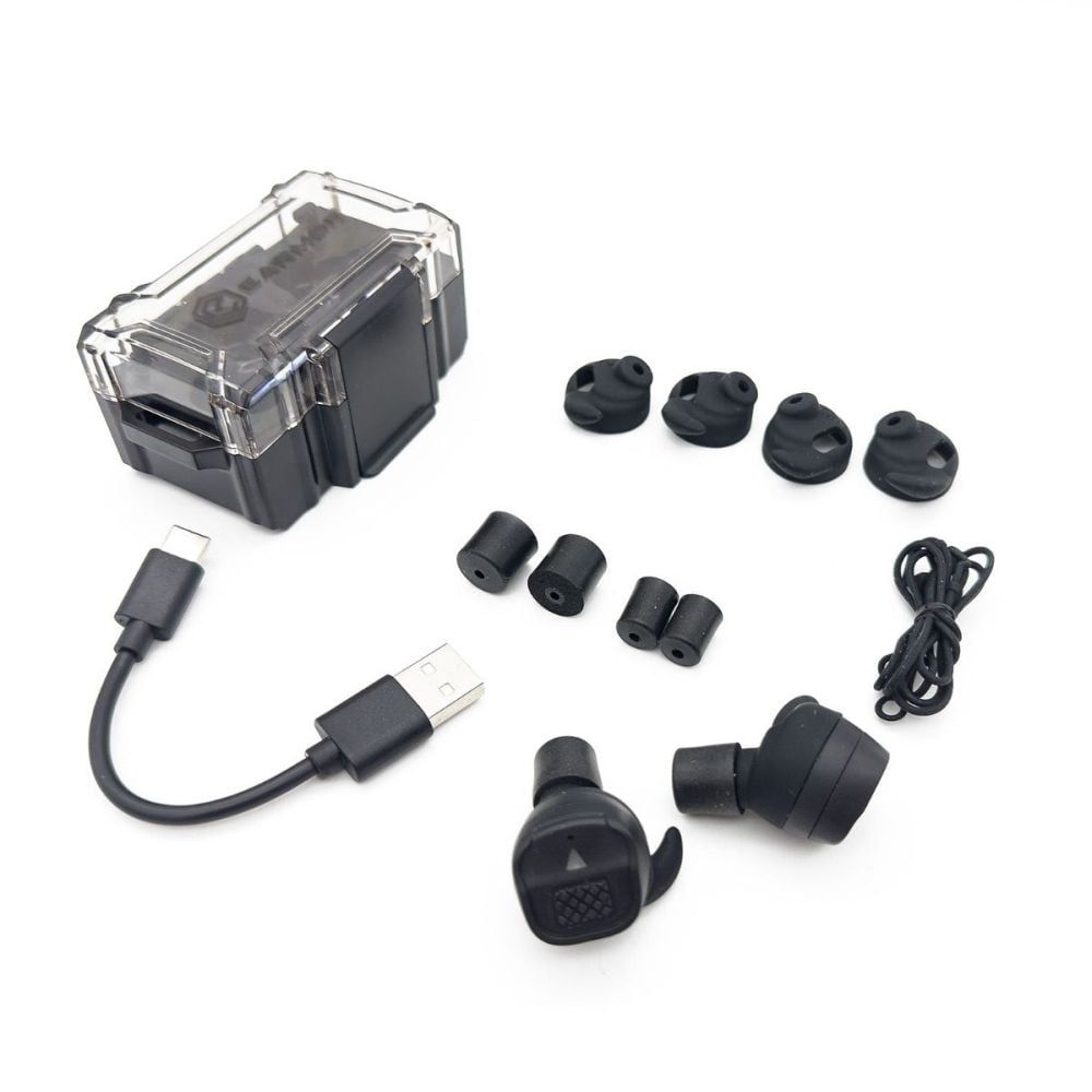 Активні захисні беруші (навушники). Рівень шумоподавлення 22 дБ (NRR). Два режими роботи: «У приміщенні» та «Поза приміщенням». Інтуїтивно зрозуміле керування однією кнопкою. Автоматичне вимкнення після 2 годин бездіяльності та повного заряджання. Живлення від вбудованого акумулятора. У комплекті до навушників йдуть зарядний USB-кабель, по 3 набори змінних амбушур та вкладишів, зарядний чохол, силіконовий шнур