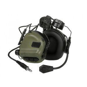 Активні захисні навушники з гарнітурою, яку можна переставляти, та кріпленням на шолом. Рівень шумоподавлення 22 дБ (NRR). Кнопки увімкнення/вимкнення та гучності. Автоматичне вимкнення після 4 годин бездіяльності. Працює від 2 батарейок AAA – батарейки слід придбати окремо. Вбудований роз'єм NATO Military Standard 7.0 для PTT / PUSH TO TALK – «Натисни та говори»
