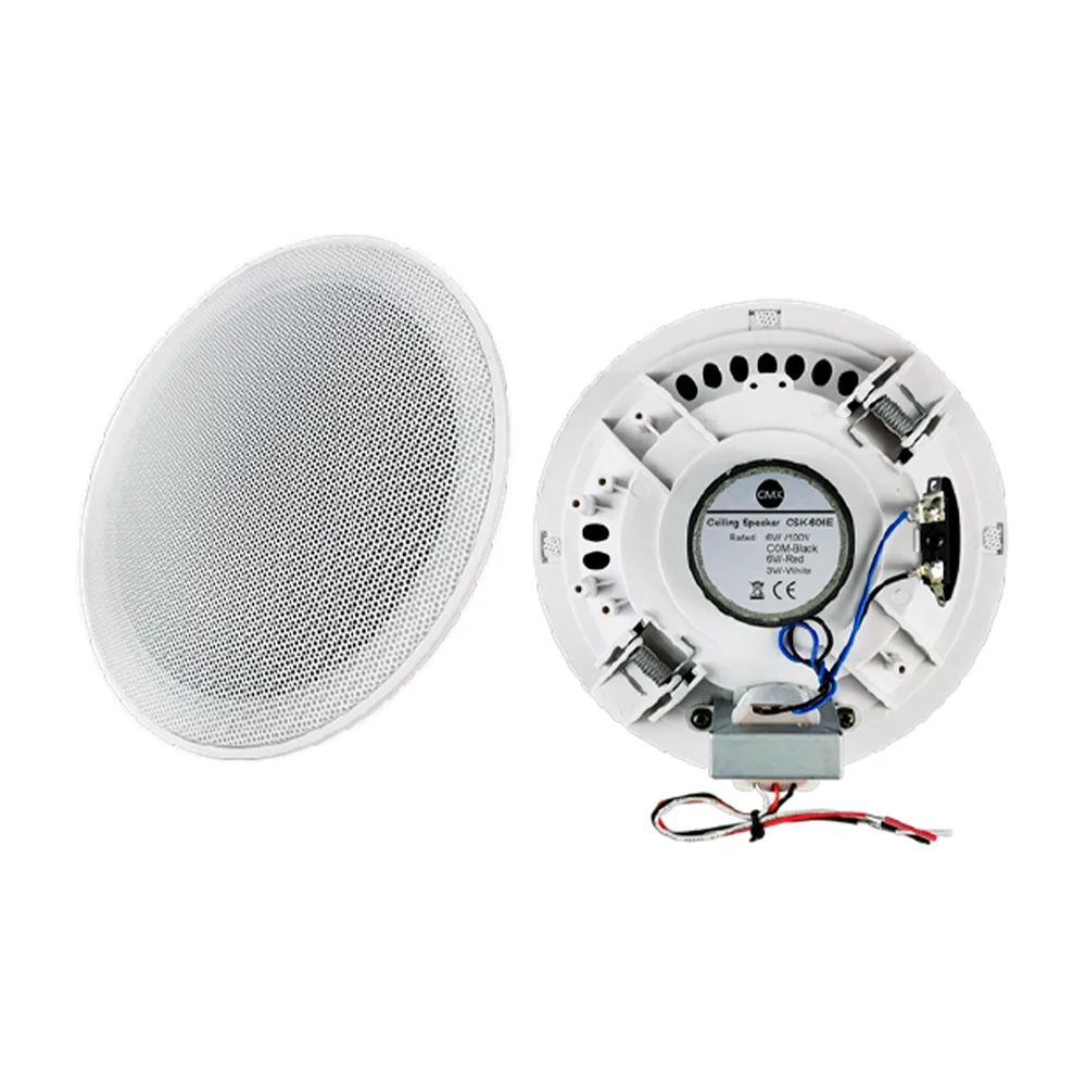 6,5-дюймовий стельовий динамік для використання в системі BGM та PA. Лінійний вхід 100В або 70В. Матеріал: Корпус ABS і металева решітка білого кольору. Вага 0,76 кг