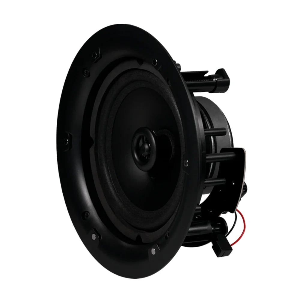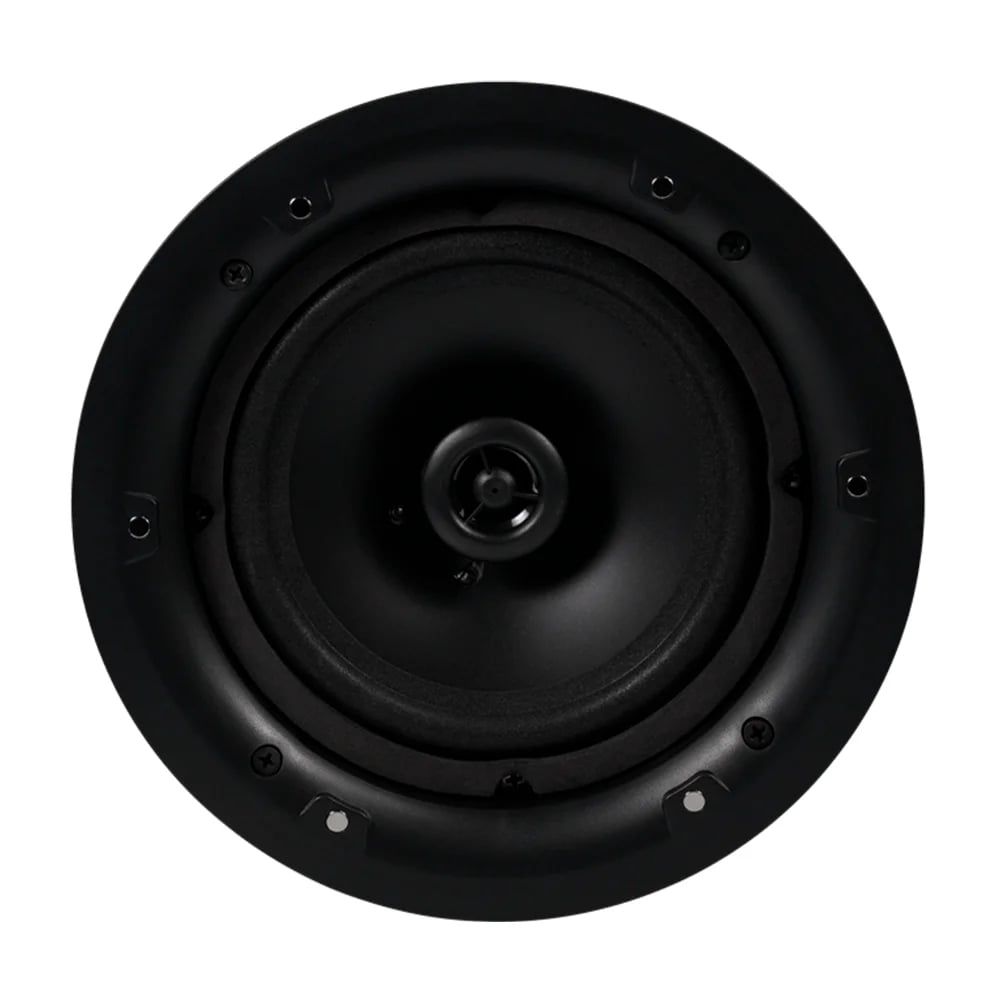 6.5-дюймовий низькочастотний + 1-дюймовий високочастотний 2-смуговий стельовий динамік з кросовером без рамки; вихідна потужність 30-60 Вт, 8 Ом; лінійний вхід 100 В; чутливість 90 дБ; матеріал ABS-пластик та металева решітка; розміри Ø235 / 98 мм, вага 1.4 кг