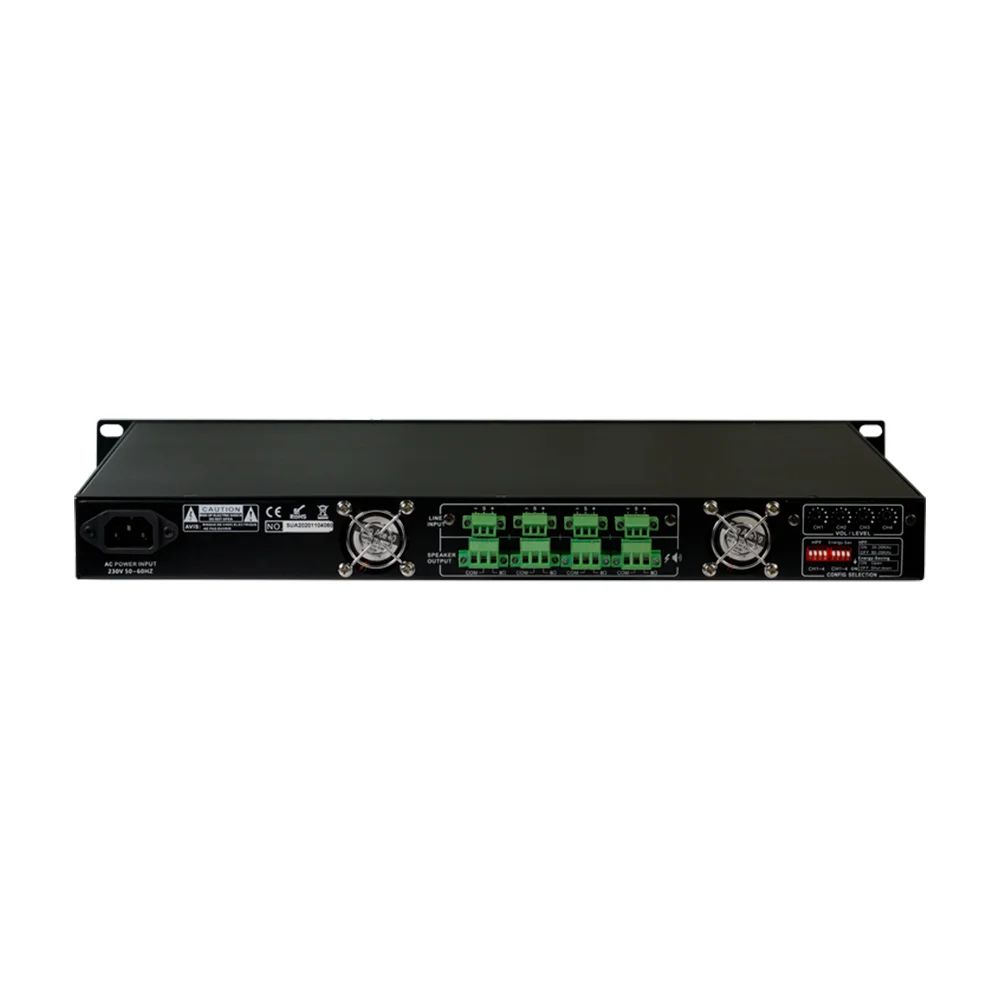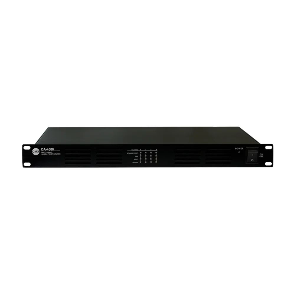 Чотириканальний підсилювач DA-4500 класу D, вихідна потужність RMS 4 x 500Вт, вихід 100В / 8 Ом, монтаж у стійку 19", висота 1U, 484 / 420 / 44 мм, 10 кг