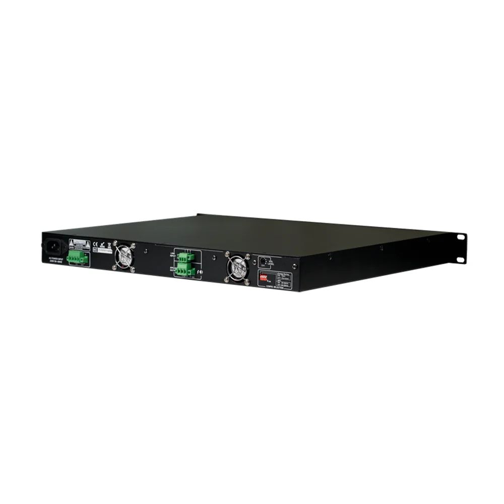 Одноканальний підсилювач класу D; вихідна потужність 500 Вт, вихід 100 В/ 8 Ом, монтаж у 19-дюймову стійку, висота 1U; AC 230 В / DC 24 В; 484 / 420 / 44 мм; 5 кг
