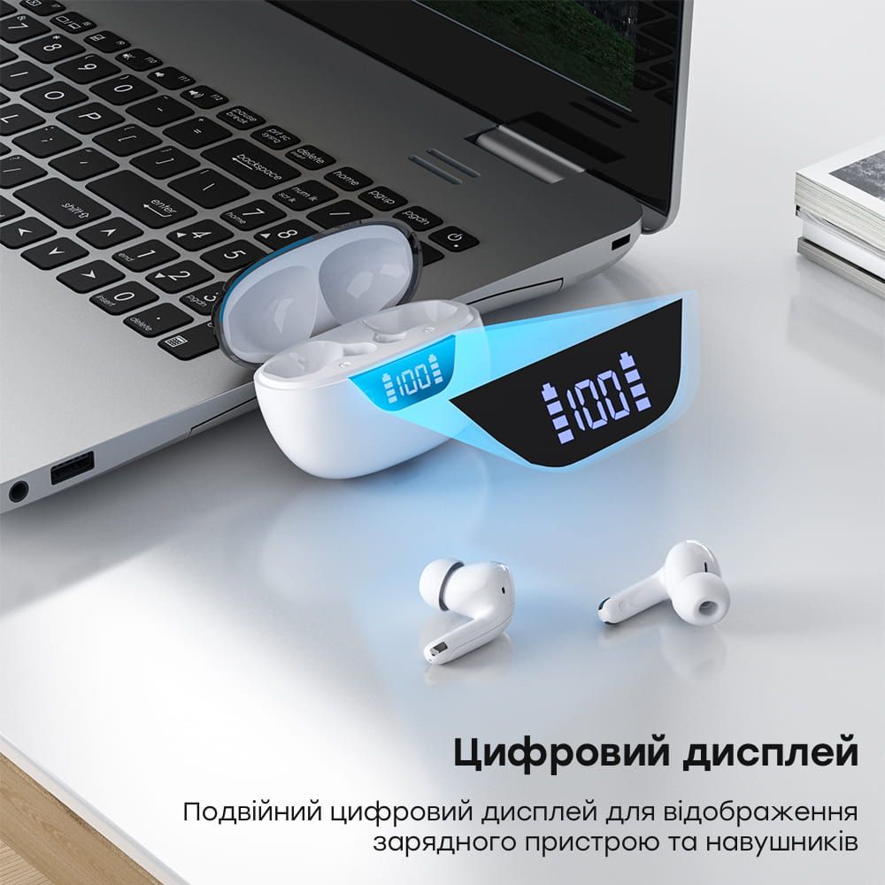 Бездротові навушники Choetech BH-T60 White TWS, Bluetooth 5.3, ANC+ENC, LED-дисплей