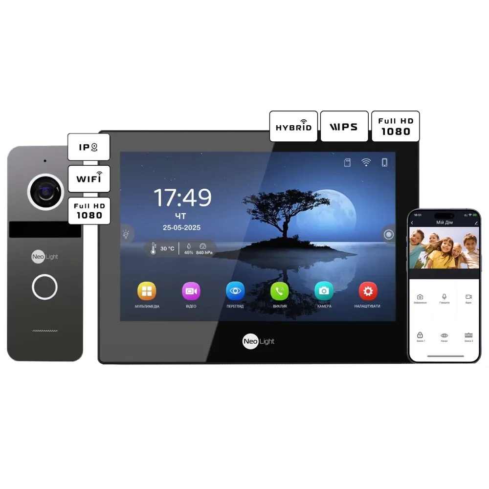Neolight ALPHA Hybrid Black + SOLO IPW Graphite з кутком, PoE адаптер для панелі виклику Комплект відеодомофону