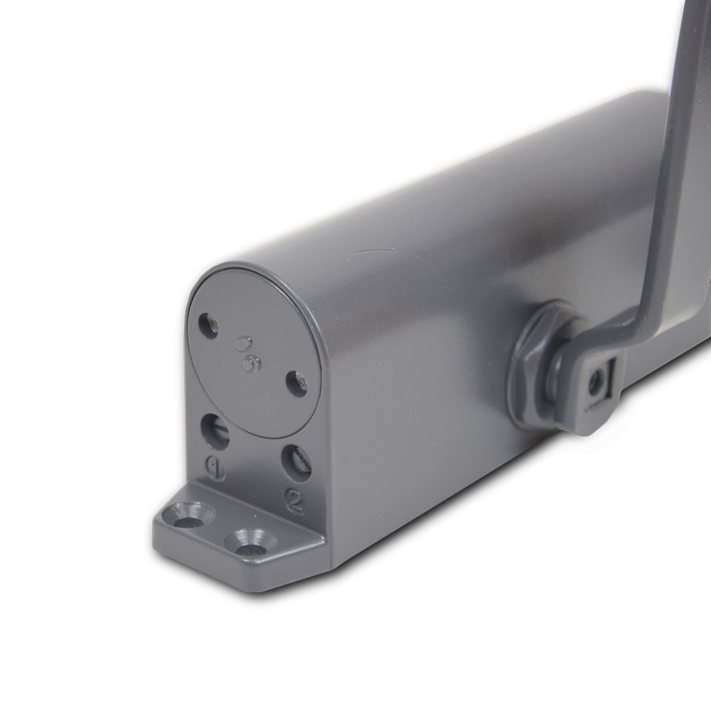 A-062 Graphite дотягувач верхнього монтажу з важільною передачею. Напівкомерційне використання, напрацювання на відмову 500.000 циклів. Зусилля закривання DIN 4 (вага дверей 60-85 кг, ширина до 1300 мм). Функція Hold-Open. Колір - графітовий. Габаритні розміри тіла дотягувача: 203 x 73 x 67 мм. Вага тіла дотягувача: 1160 г. Розміри упаковки: 303 x 90 x 80 мм. Вага упаковки: 1840 г