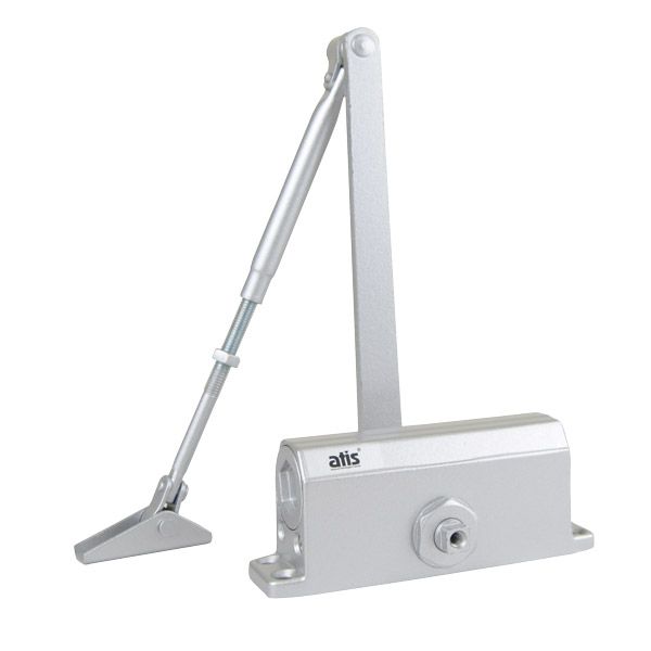 ATIS DC - 602 OH Silver дотягувач верхнього монтажу з важільною передачею Напівкомерційне використання, напрацювання на відмову 500000 циклів. Зусилля зачинення DIN2 (вага дверей до 45 кг, ширина до 850мм). Функція Hold-Open. Колір срібний.