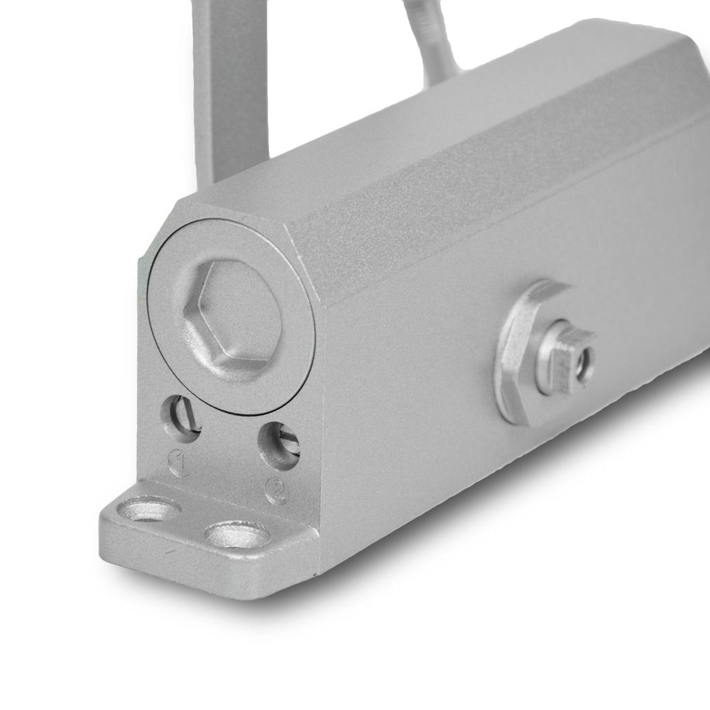 ATIS DC03 Silver дотягувач верхнього монтажу з важільною передачею. Напівкомерційне використання, напрацювання на відмову 500.000 циклів. Зусилля закривання DIN3 (вага дверей до 60 кг, ширина до 950мм). Колір срібний.