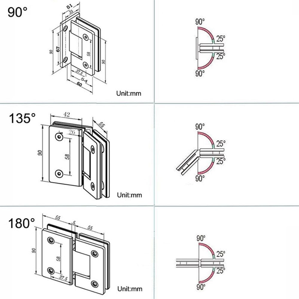 Максимальна ширина дверей: 800 мм. Максимальна висота дверей: 2100 мм. Максимальна вага дверей: пара петель може витримувати до 40 кг. Регулювання швидкості закриття: ні. Товщина скла: 8-12 мм
