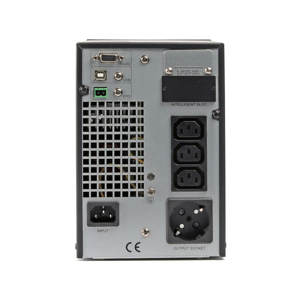 ДБЖ EnerGenie EG-UPSO-1000 – пристрій із типом архітектури подвійного перетворення (On-Line), потужністю 1000 В·А / 900 Вт із чистою синусоїдою на виході, призначений для захисту чутливої електроніки. Оснащений двома вбудованими акумуляторами 12В / 9А·год, що забезпечує до 20 хвилин автономної роботи й заряджається до 90% за 3 години. Підтримує AVR, оснащений РК-дисплеєм, інтерфейсами USB Type-B, RS-232, EPO і системою звукових і візуальних сповіщень. Підходить для дому, офісу та обладнання з високими вимогами до електроживлення.