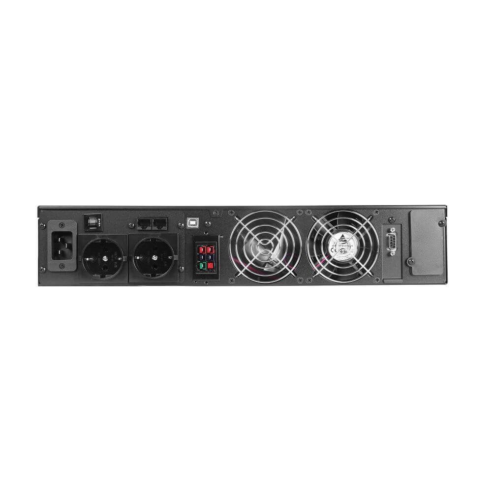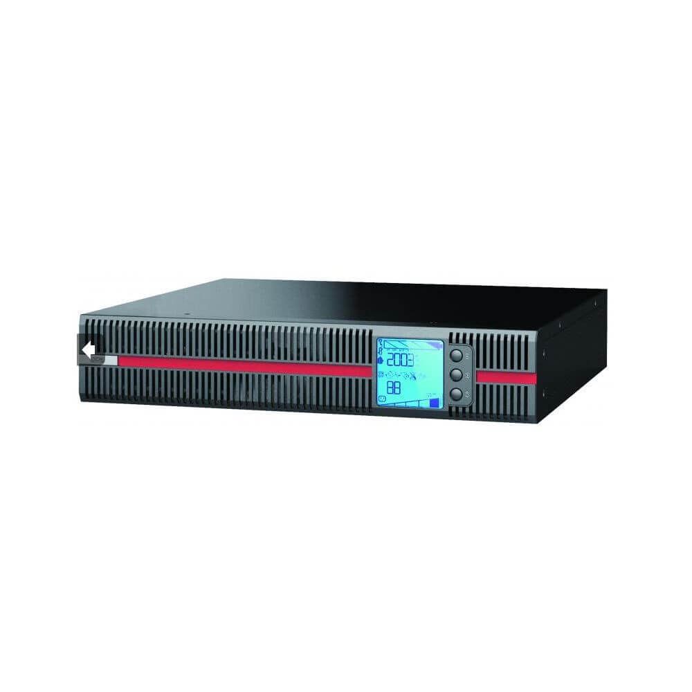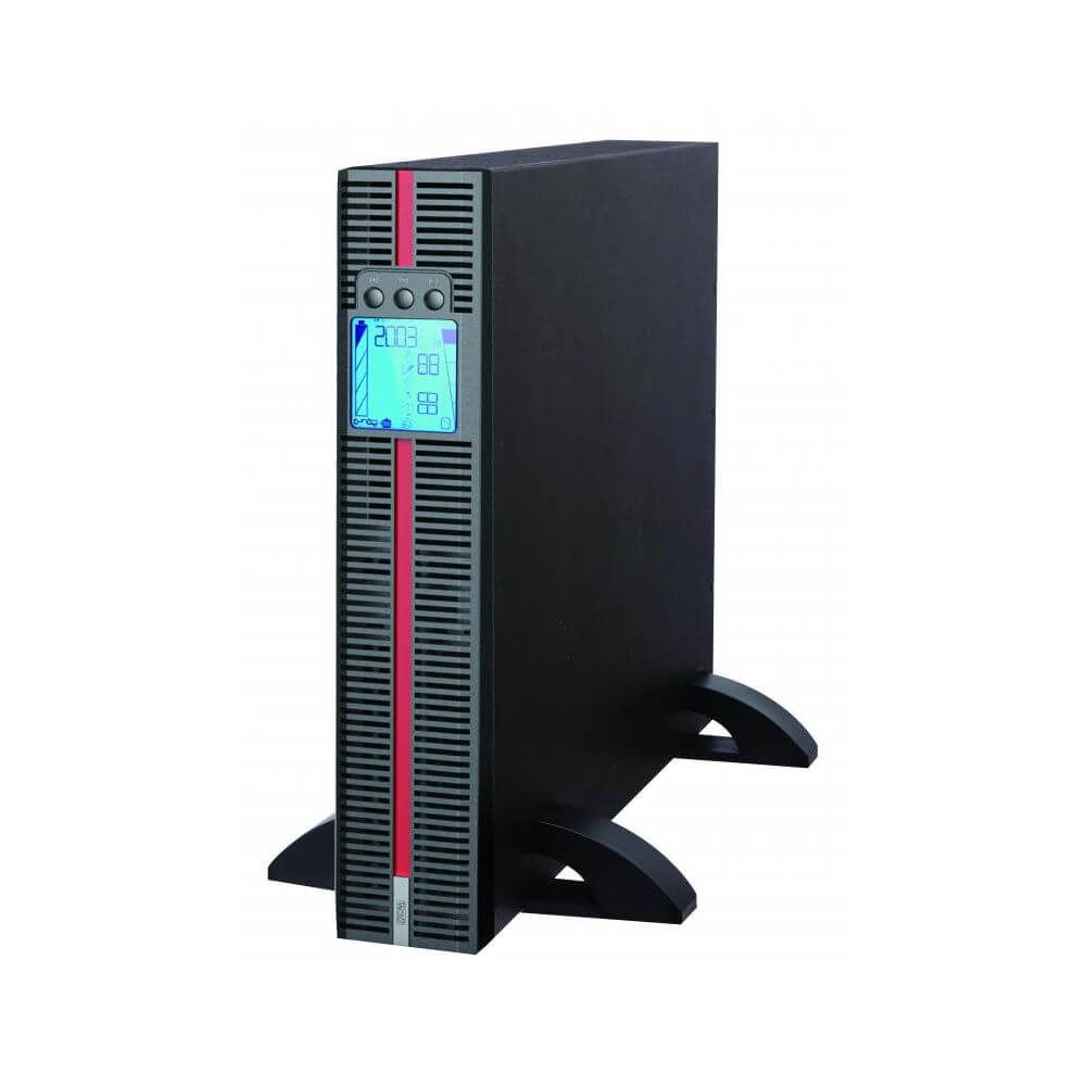 ДБЖ онлайн (подвійного перетворення). Потужність: 3000 ВА / 3000 Вт. Вхідна напруга: 120-276 В. Вихідна напруга: 208 В / 220 В / 230 В / 240 В ± 2%. Форма вихідної напруги: чиста синусоїда. 6 АКБ 12В ємністю 9Агод. Встановлення підлогове або в стійку 19". Розміри 428 x 635 x 84 мм