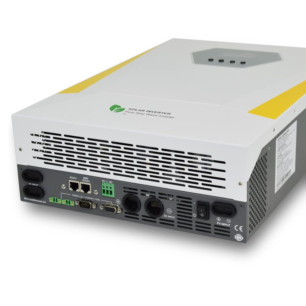 Гібридний інвертор для сонячних панелей однофазний. Номінальна потужність: 5500 Вт. Вхідна напруга: DC 48 В. Макс.струм зарядки: 100 А. Номінальна напруга: AC 220 В. Форма вихідного сигналу: чиста синусоїда. Функція холодного запуску. Wi-Fi модуль. Можливість підключати паралельно.