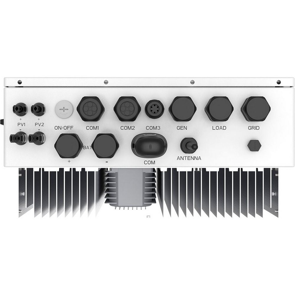 Гібридний однофазний інвертор для сонячних панелей. Номінальна потужність: 8 квт. Напруга акумулятора: 48 В. Макс. вихідний струм: 40 А. Рекомендована макс. потужність PV: 12.8 кВт. Макс. вхідна напруга: 600 В. Діапазон напруги батареї: 40-60 В. Форма вихідного сигналу: чиста синусоїда. Час перемикання на резерв: 4 мс. Розміри: 406 х 560 х 215 мм. Вага: 26 кг.