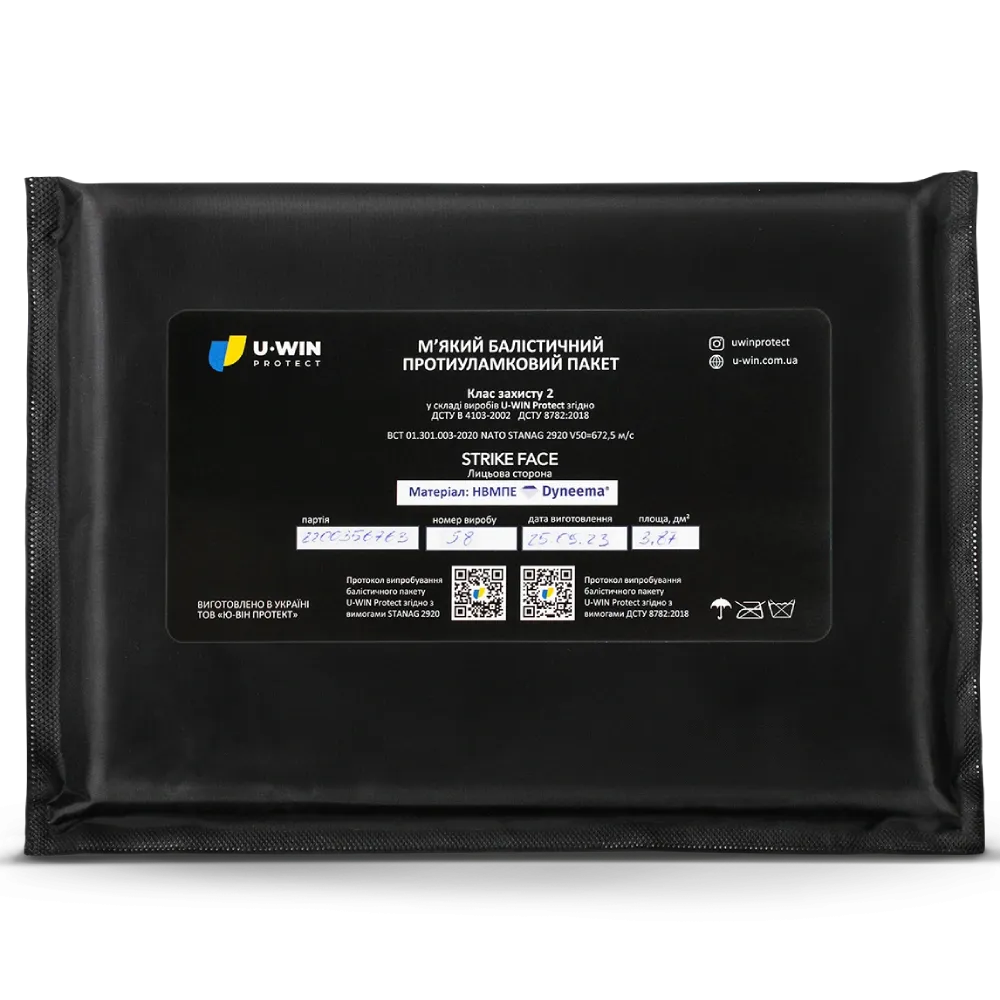 U-WIN НВМПЕ Dyneema USA Балістичний пакет під захист живота 2-й клас площа захисту 3,87 дм.кв.