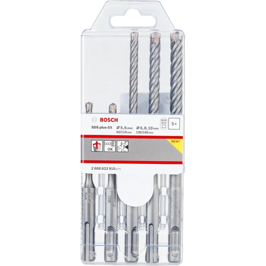 Bosch SDS plus-5X 5шт 5/6 x 110мм; 6/8/10 x 160мм Набір бурів по бетону