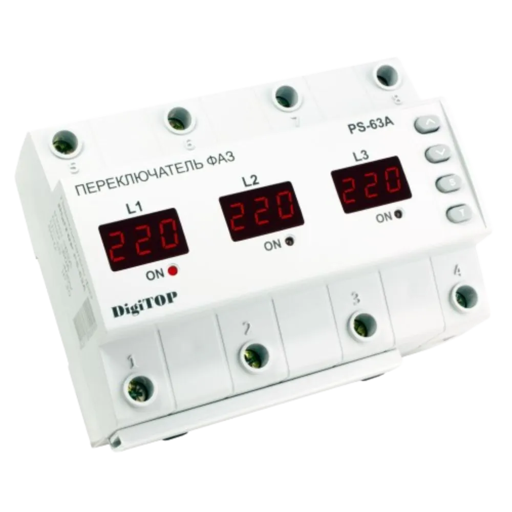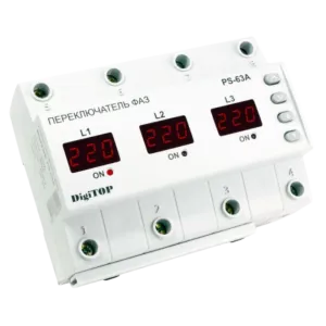 Пріоритетна фаза L1, L2, L3, OFF; Верхня межа відключення 210-270В; Нижня межа відключення 120-200В