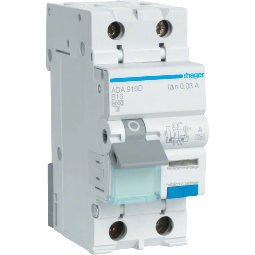 Hager ADA916D Дифавтомат 1P+N, 6kA, B-16A, 30mA, A