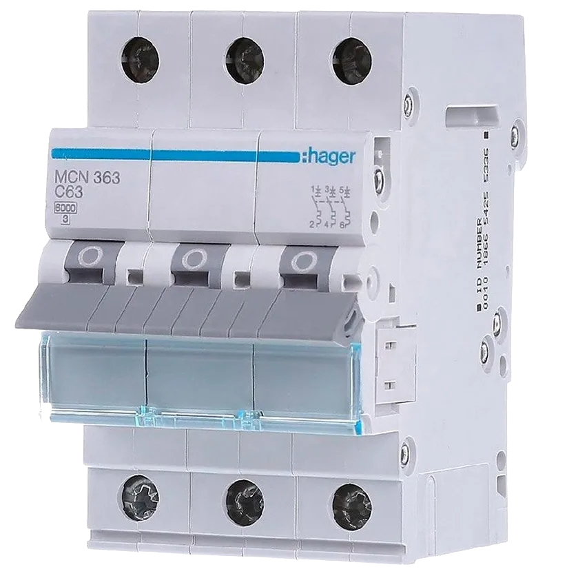 Hager MCN363 Автоматичний вимикач 3P 6kA C-63A 3M