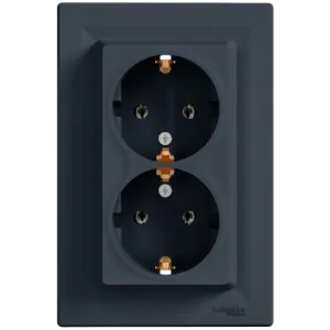 Schneider Electric EPH9900171 Asfora Розетка подвійна 220В антрацит, пластик, із заземленням, Schuko, без захисної кришки, без шторок, для врізного монтажу