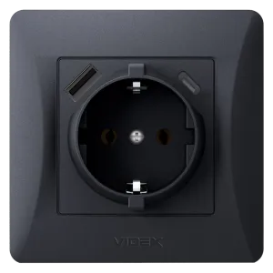 VIDEX BINERA Розетка одинарна із заземленням з USB+USB-C чорний графіт