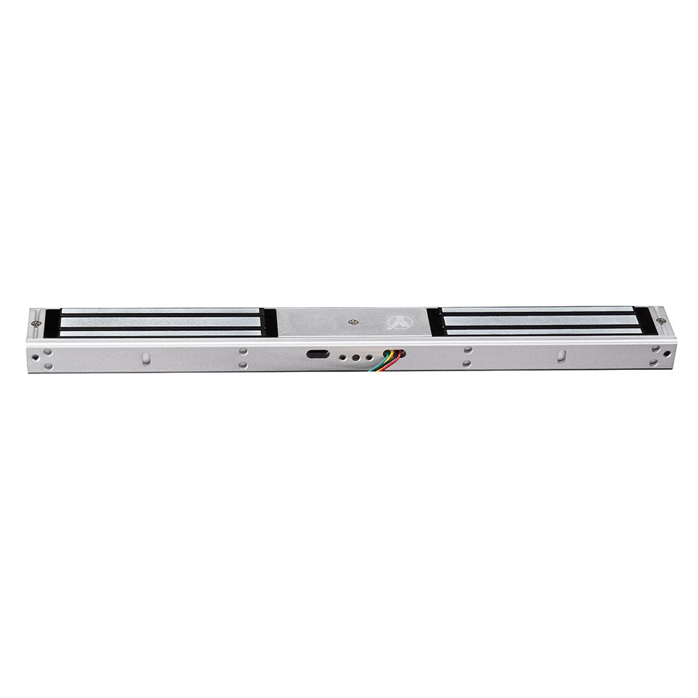 Електромагнітний замок для двостулкових дверей з таймером затримки, світловою індикацією, датчиком стану замка, накладний, сила утримання 280кг*2, час затримки 0,3,6,9сек, живлення: DC12V / 500mA*2, DC24V / 250mA*2. Розміри: 500х48,8х27,9 мм. Підходить для дерев'яних, металевих та протипожежних дверей.