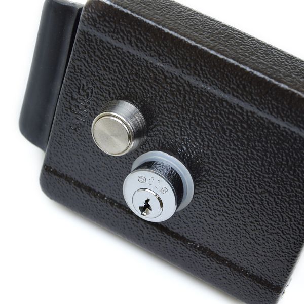 Електромеханічний замок ATIS Lock MB. Матеріал корпусу: пофарбована сталь. Тип встановлення: накладний. Живлення: 12 В. Струм споживання: 2 А. Розміри: 160х105х37+10 кнопка – з висунутим язичком; 137х105х37 – без язичка. Вага: 1300 г. Колір: коричневий.
