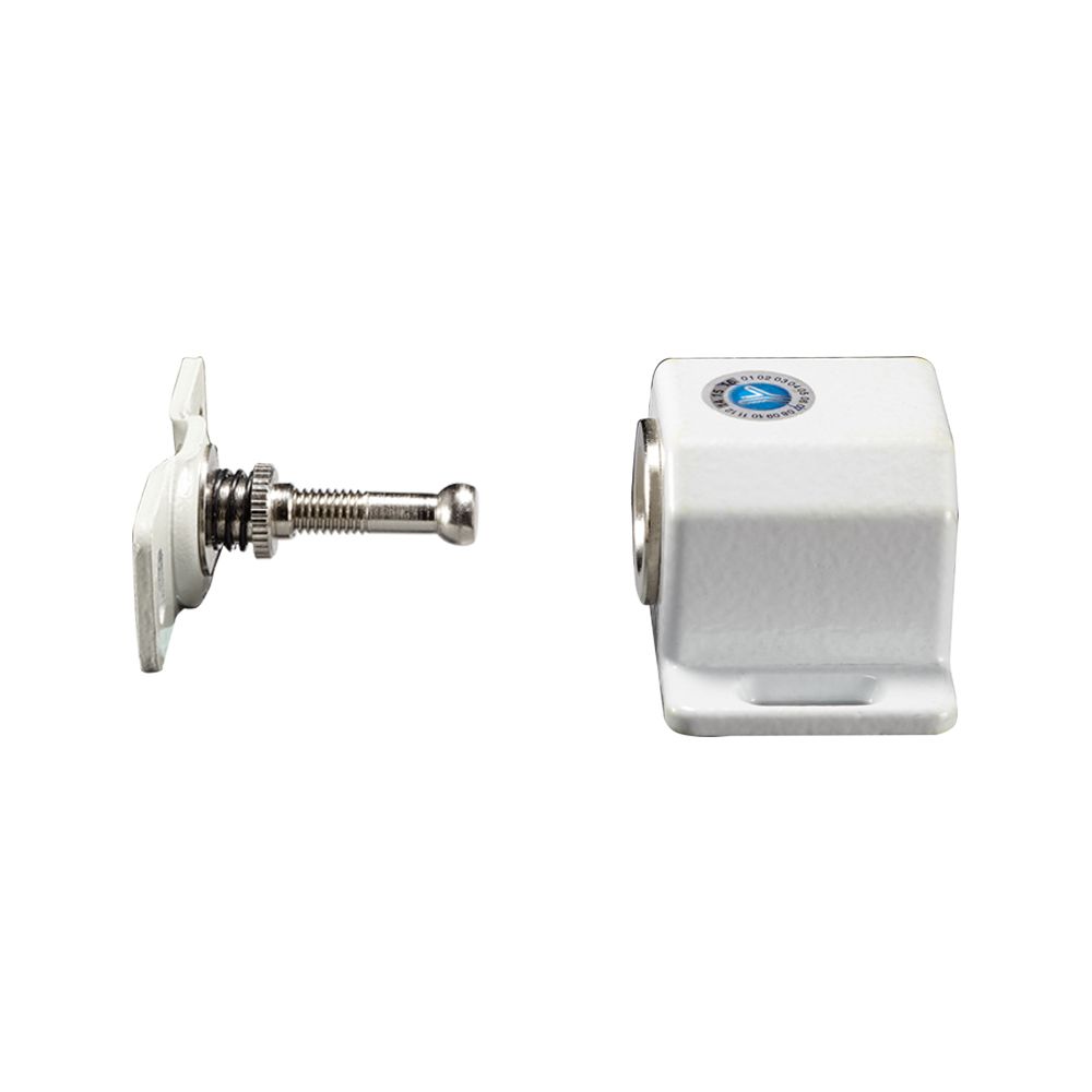 Yli Electronics YE-304NС — накладний мініатюрний електромеханічний замок, універсальний для встановлення в торговельні меблі, камери схову, ящики та шафи. Режим живлення: NС - постійний струм. Режим роботи: закривається під напругою. Живлення: 12 В постійного струму. Струм споживання: 100 мА. Потужність: 0,12 Вт. Напруга закриття: постійна. Утримувальна сила: 150 кг (1470 Н). Матеріал корпусу: метал. Розміри замка (Д x Ш x В): 50 x 30.2 x 26.8 мм. Розміри шпильки (штиря): 18,5 x ∅7 мм