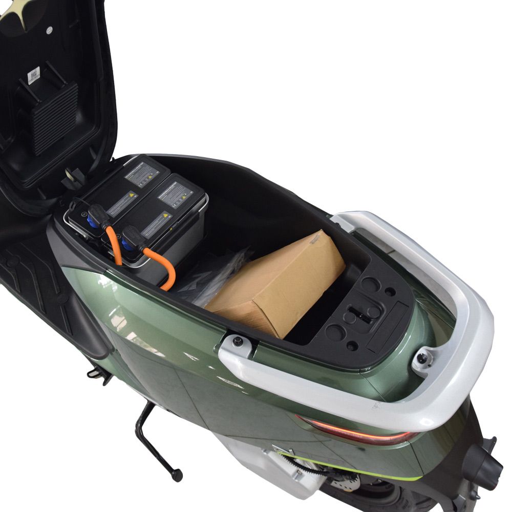 Обладнаний потужним двигуном Bosch 2200 Вт, Літієвою портативною батареєю ємністю 72В 50А·год. До 120 км на одній зарядці. 7-дюймовий кольоровий TFT-екран. Інтерфейс USB. Світлодіодні ліхтарі. Протиугінна система. Максимальне навантаження: до 250 кг. Запуск без ключа або через мобільний додаток. Місце під сидінням для розміщення шолома. Передні та задні дискові гальма. Робота через мобільний додаток LNGO. Навігація в додатку. Контроль скутера через мобільний додаток LNGO. Доступний у різних стильних колірних варіантах: білий, чорний матовий, зелений матовий