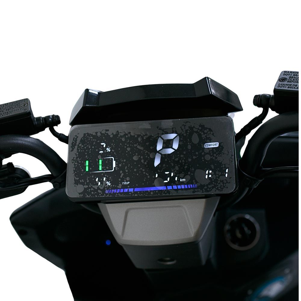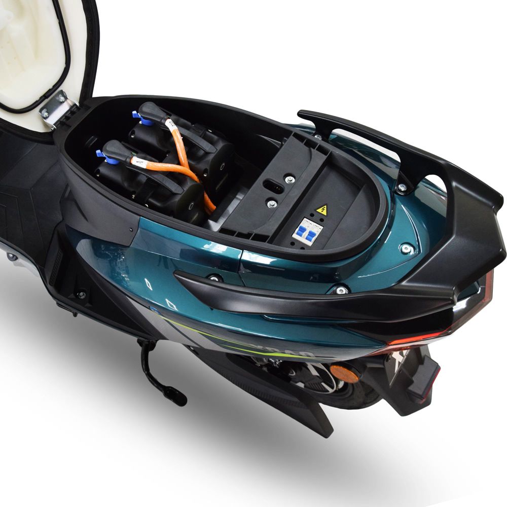 Безщітковий електродвигун із прямим приводом максимальною потужністю 3000Вт, максимальна швидкість до 110 км/год, запас ходу 140 км, 2-шт акумулятора Li-ion 72В 25А·год, максимальне навантаження до 250 кг, світлодіодне підсвічування, протиугінна система.