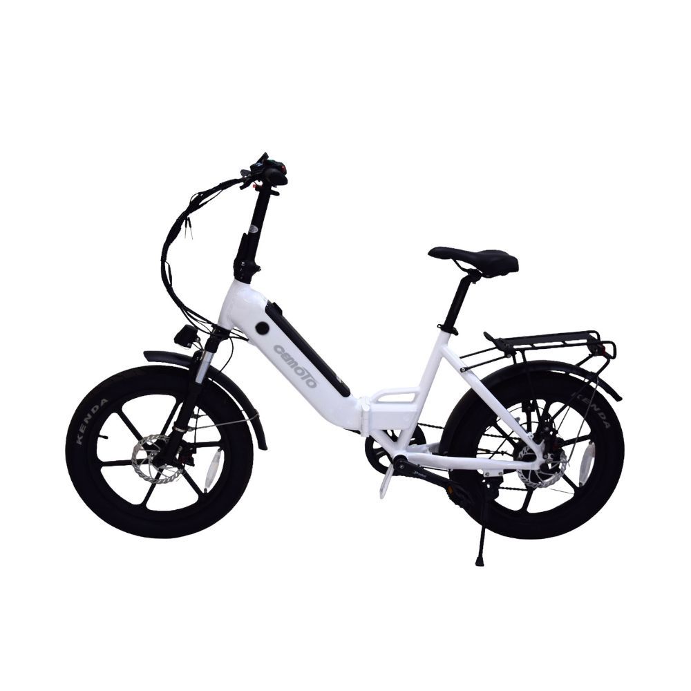 Електровелосипед CEMOTO CEM-AEB57 - це неймовірно зручний і функціональний транспортний засіб, що являє собою чудове поєднання передових технологій і високоякісних компонентів. Двигун: 350 Вт BLDC безщітковий мотор-концентратор. Акумулятор: 48 В 10 А*год Li-ion. Зарядний пристрій: 54.6 В 2 A UL. Інтелектуальний зарядний пристрій змінного струму 100-240 В. Час заряджання: 4-5 годин. Матеріал рами: Алюмінієвий сплав. Передня вилка: Амортизаційна вилка MoZO. Розмір коліс: 20". Ланцюг: KMC. Покришка: 20*2.35 KENDA. Перемикач передач: зовнішній 7-швидкісний Shimano. Дальність ходу на одному заряді: 35-45 км. Максимальна швидкість: 25-32 км/год. Переднє гальмо: дискові гальма. Заднє гальмо: дискові гідравлічні гальма. Гальмівний важіль: Алюміній з датчиком відключення. Дисплей: РК-дисплей (швидкість, батарея, пробіг). Світло: Світлодіодна передня фара + задній ліхтар. Колір рами: червоний або білий
