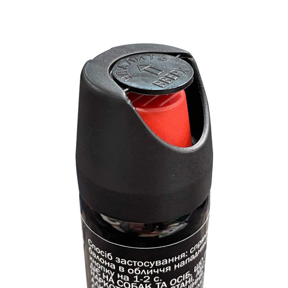 Діюча речовина – капсаїцин (витяжка з натурального червоного перцю). Втричі збільшена пекучість. Викликає сильну сльозотечу, подразнення очей та слизових оболонок носоглотки. Маса заправленого балона: 70 г. Ефективна дальність застосування: до 2.5 м. Габаритні розміри: висота 124 мм. Габаритні розміри: діаметр 35 мм. Час безперервного використання: 6...7 с. Зберігати та використовувати при температурі: від -8˚С до +45˚С.
