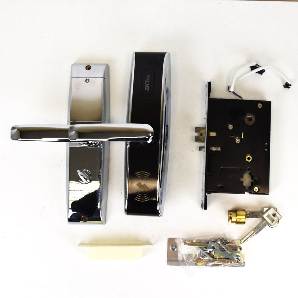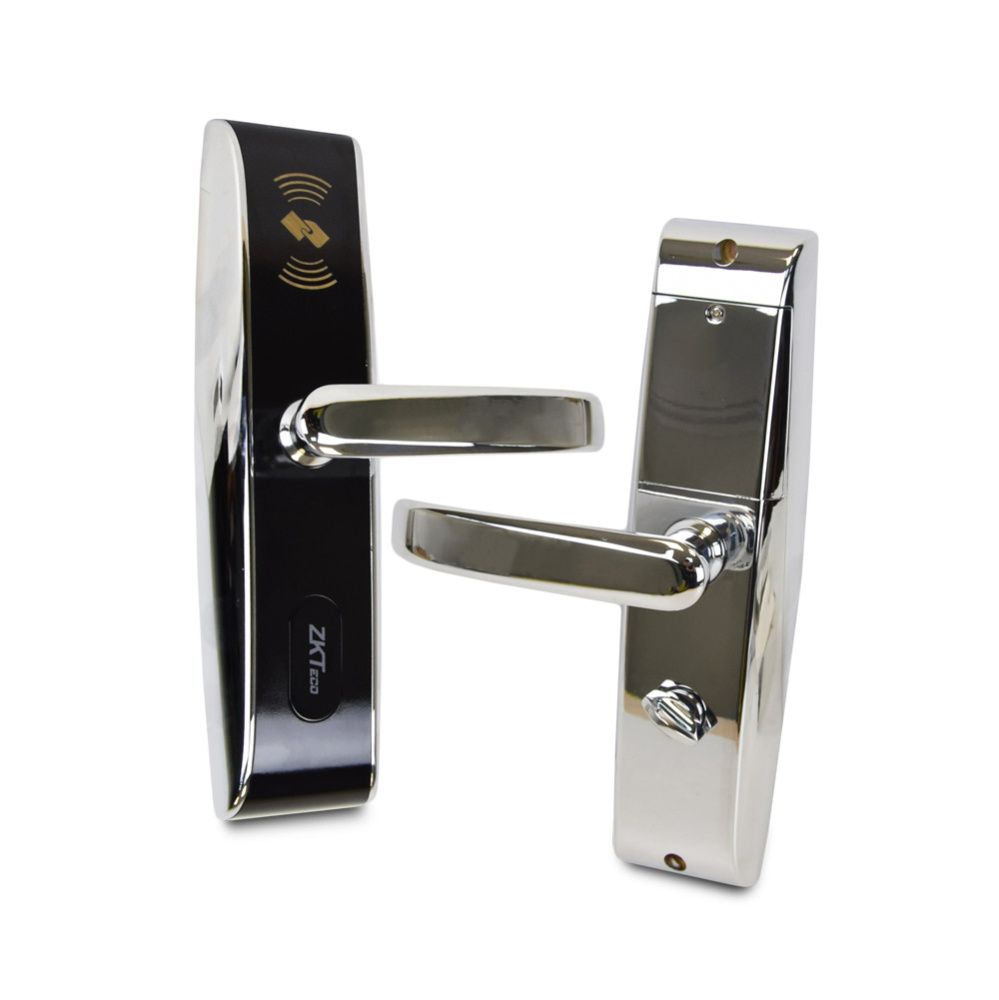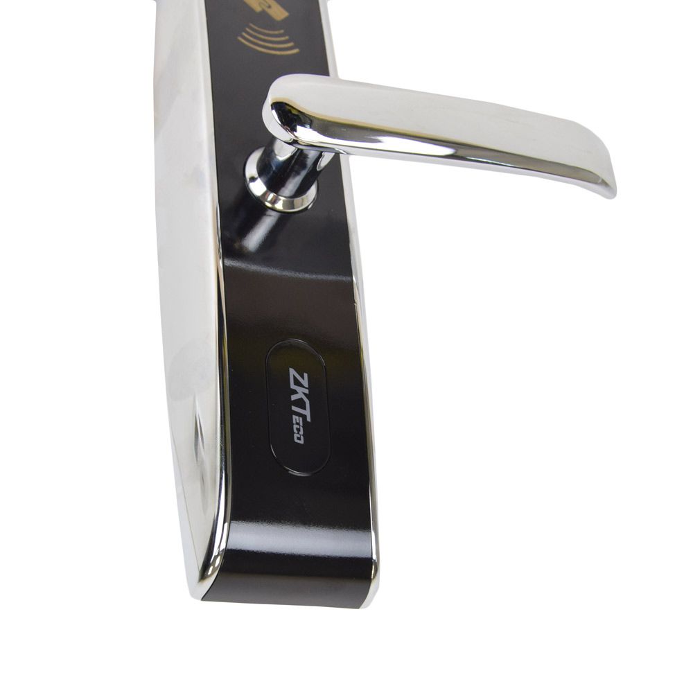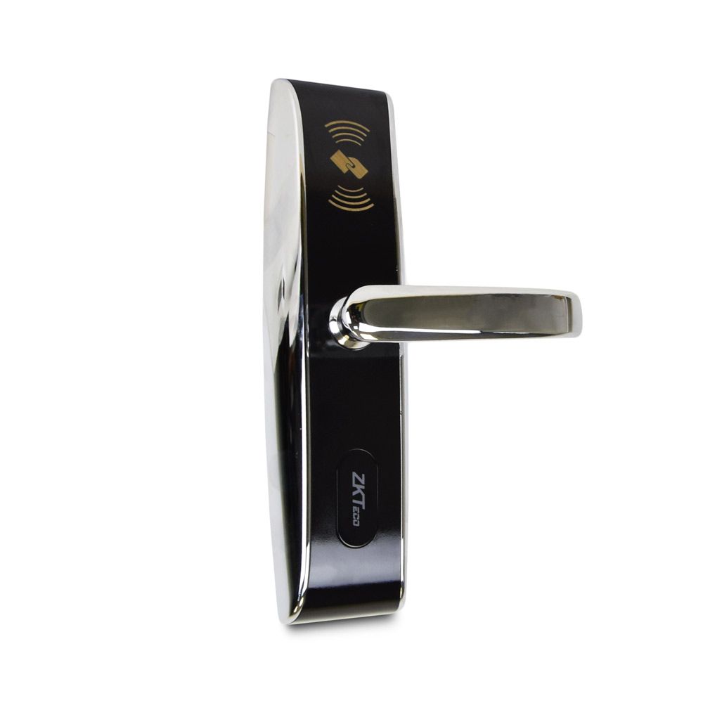 Електронний замок ZKTeco ZL400 left для лівих дверей для готелів зі зчитувачем RFID карт Mifare для обмеження доступу сторонніх осіб в номери і службові приміщення готелю. Замок сумісний із USB кодувальником ZKTeco D147-H. Зв'язок ZigBee (підключення до RG4100 +). Робота з програмним забезпеченням ZKBioSecurity.