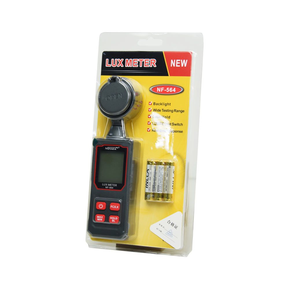 Люксметр Noyafa NF-564 цифровий для вимірювання рівня освітленості в діапазоні до 200 000 LUX. Підтримує одиниці LUX і FC з автоматичним вибором діапазону. Оснащений функцією HOLD, підсвічуванням дисплея та захисною кришкою датчика. Час вибірки 0,5 секунди. Працює від трьох батарейок AAA.