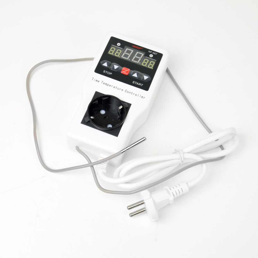 Термореле Noyafa NF-567 термостат з таймером для автоматичного керування температурою в діапазоні від -9 до +99°C. Підтримує режими нагріву та охолодження, оснащений виносним датчиком NTC і функцією сигналізації перегріву. Має таймер, пам’ять налаштувань і калібрування. Працює від мережі 220 В з навантаженням до 1200 Вт.