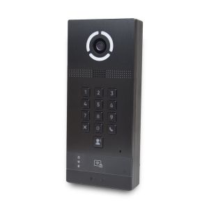 Багатоабонентська відеопанель з функцією розпізнавання облич і мультиформатним зчитувачем UKEY: підтримує ідентифікатори стандартів EM-Marine / Mifare / NFC / Bluetooth. Роздільна здатність 2 Mpx, вихідне відео Full HD (1920х1080). Чутливість 0.01 Lux. Кути огляду: по горизонталі 120°. Вихід Wiegand. Виконана з алюмінію. Ступінь захисту IP65. Врізний монтаж. Підтримка SIP протоколу. t° -40°C~ +65°C. Живлення 12V/PoE, споживання 6.5W, в режимі очікування 3.8W. Розміри 106 х 240 х 34,5мм