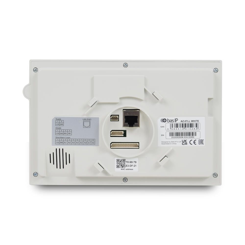 Комплект: відеодомофон і відеопанель. BAS-IP AZ-07LL – IP-аудіодомофон із 7-дюймовим сенсорним TFT LCD-екраном 800x480 на базі Linux. Підтримує підключення до 8 IP-камер, 9 індивідуальних і 9 багатоквартирних панелей виклику, а також до 8 додаткових моніторів. Оснащений функцією керування ліфтом, автовідповідачем, прийманням повідомлень та можливістю налаштування режиму очікування з переглядом зображення з IP-камери. Працює від PoE або 12В DC, споживаючи всього 6Вт в активному режимі. AV-06 - Індивідуальна IP відеопанель з Wi-Fi. Роздільна здатність камери 2 Mpx, вихідне відео FullHD (1920 х 1080). Чутливість 0.01 Lux. Кут огляду: по горизонталі 110°. Зчитувач карт. Виконана з пластику. Ступінь захисту IP65. Накладний монтаж. Підтримка SIP протоколу. t° -40°C~ + 65°C. Живлення 12V/PoE, споживання 5.5 W, в режимі очікування 2.1 W. Розміри 52 x 137 x 28мм