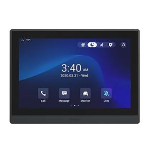 Домофон SIP з Wi-Fi. ОС Android. Мінімалістичний стильний вигляд, металевий корпус. Сенсорний 10” екран з енергозберігаючим режимом. Камера 1 Мп, Підтримка Wi-Fi та Bluetooth. Отримання зображення HD якості з дверного пристрою. Двосторонній зв'язок за протоколом SIP v2.0. Електроживлення: PoE чи від зовнішнього джерела. Можливість встановлення в електромонтажну коробку EU та US стандартів. Стійкість до втручання. Можливість настільного встановлення за допомогою додаткової підставки (купується окремо).
