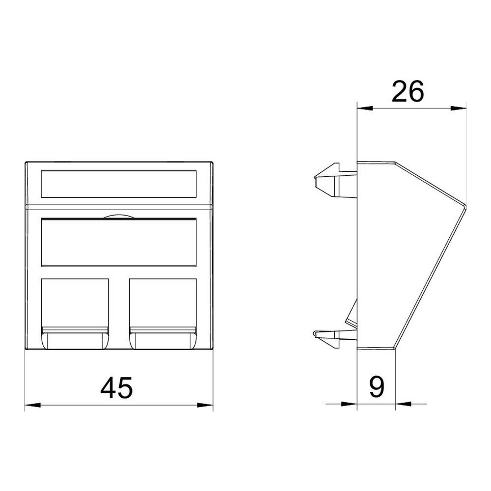Інформаційна панель кутова OBO Bettermann 45 х 45 мм 2 RJ45 пуста біла. Матеріал: полікарбонат. Розмір: 45 x 45 x 26 мм