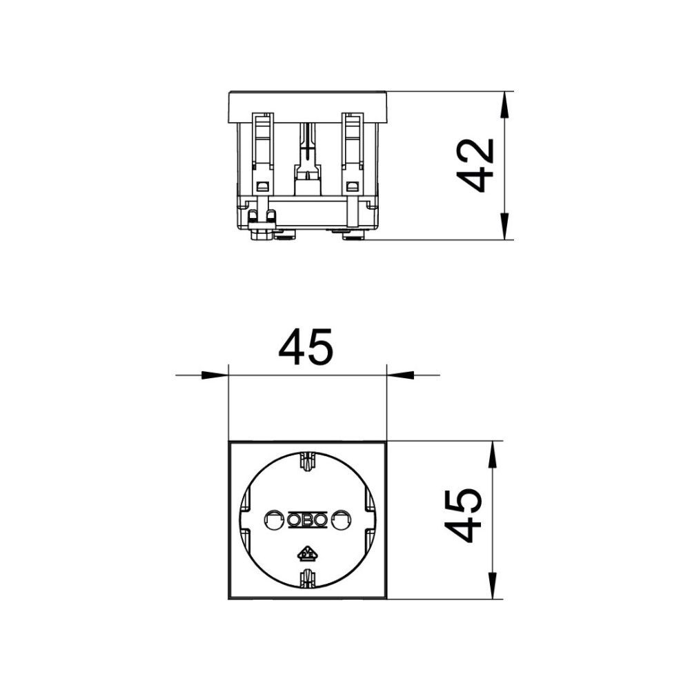 Розетка OBO Bettermann modul 45 із заземленням і шторками 250 В 16 A червона з підвищеним захистом, зі знімними клемами, 2-полюсна, з клемами підключення згідно IEC 60884-1
