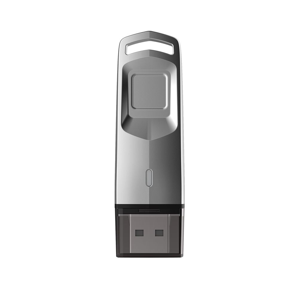 USB-накопичувач з захистом по відбитку пальця. Ємність 32 ГБ. Підтримка інтерфейсу USB 1.1 / USB 2.0 / USB 3.0. Підтримка 10 відбитків пальців. Розміри: 69,5 х 21,6 х 9,3 мм. Вага: 22 г