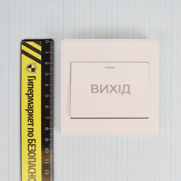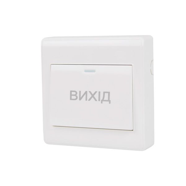 Кнопка виходу, накладна, NO / NC / COM, макс.струм комутації AC / DC220V / 10A, 85х85х25 мм. Можливе встановлення на вулиці, без прямих сонячних променів та потрапляння опадів